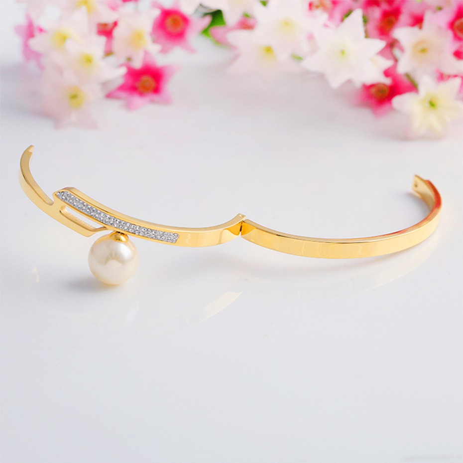 不锈钢手镯珍珠水晶钻手镯代工