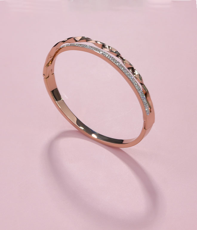 不锈钢不掉色手镯玫瑰金钻石手镯代工