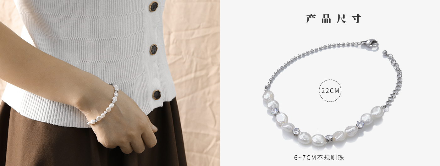 "银色自然风不规则珍珠手链"