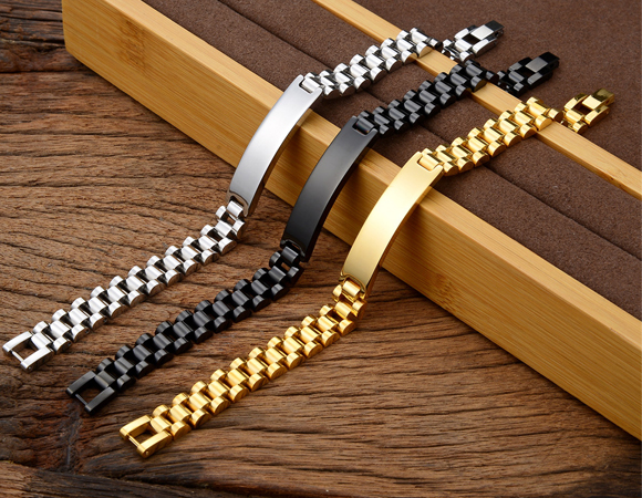 "医疗标志表带手链可刻LOGO不锈钢健康手链"