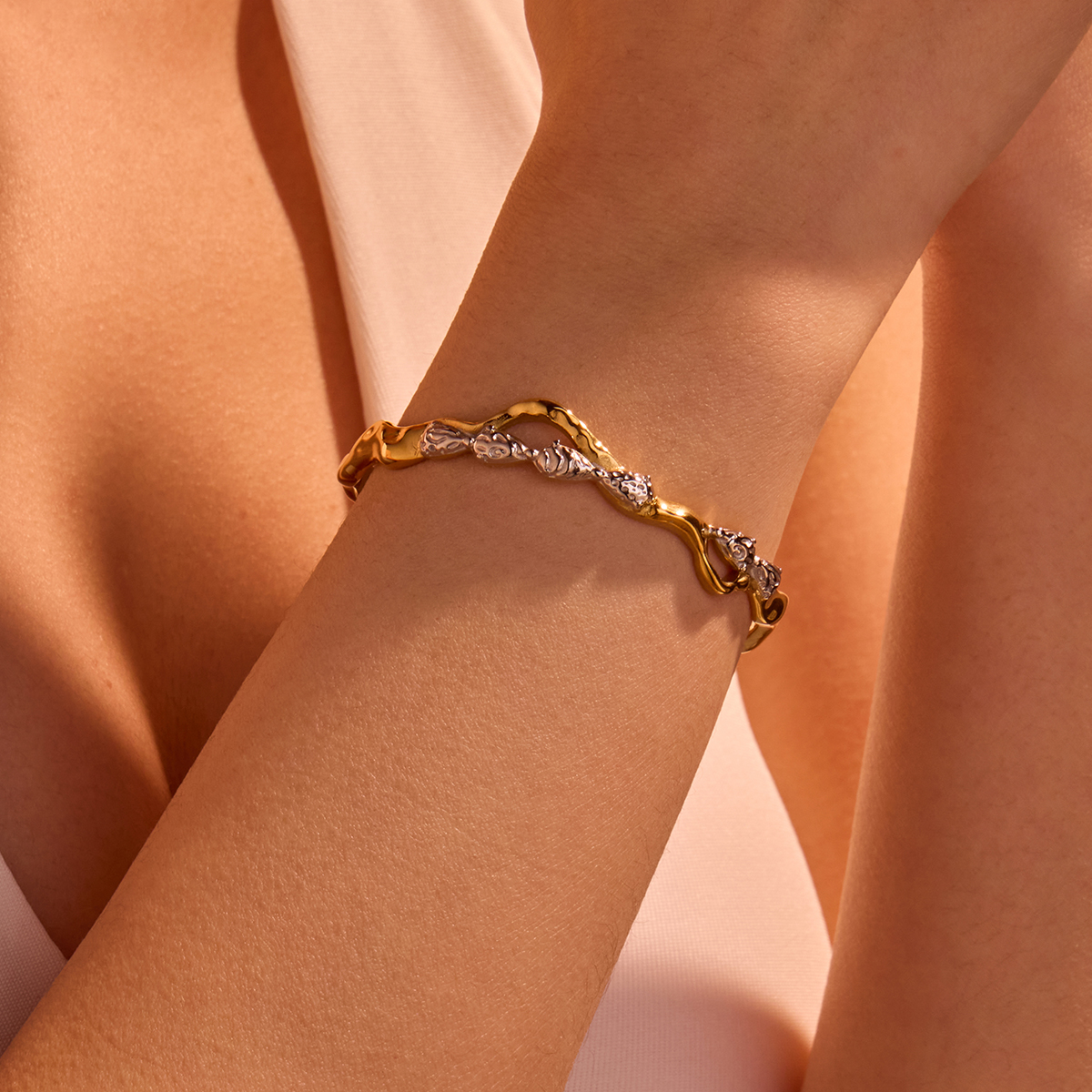 " 不规则开口锆石树枝设计手镯"