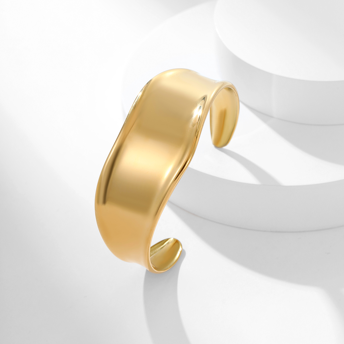 "时尚经典款18K镀金不锈钢粗款开口手镯"