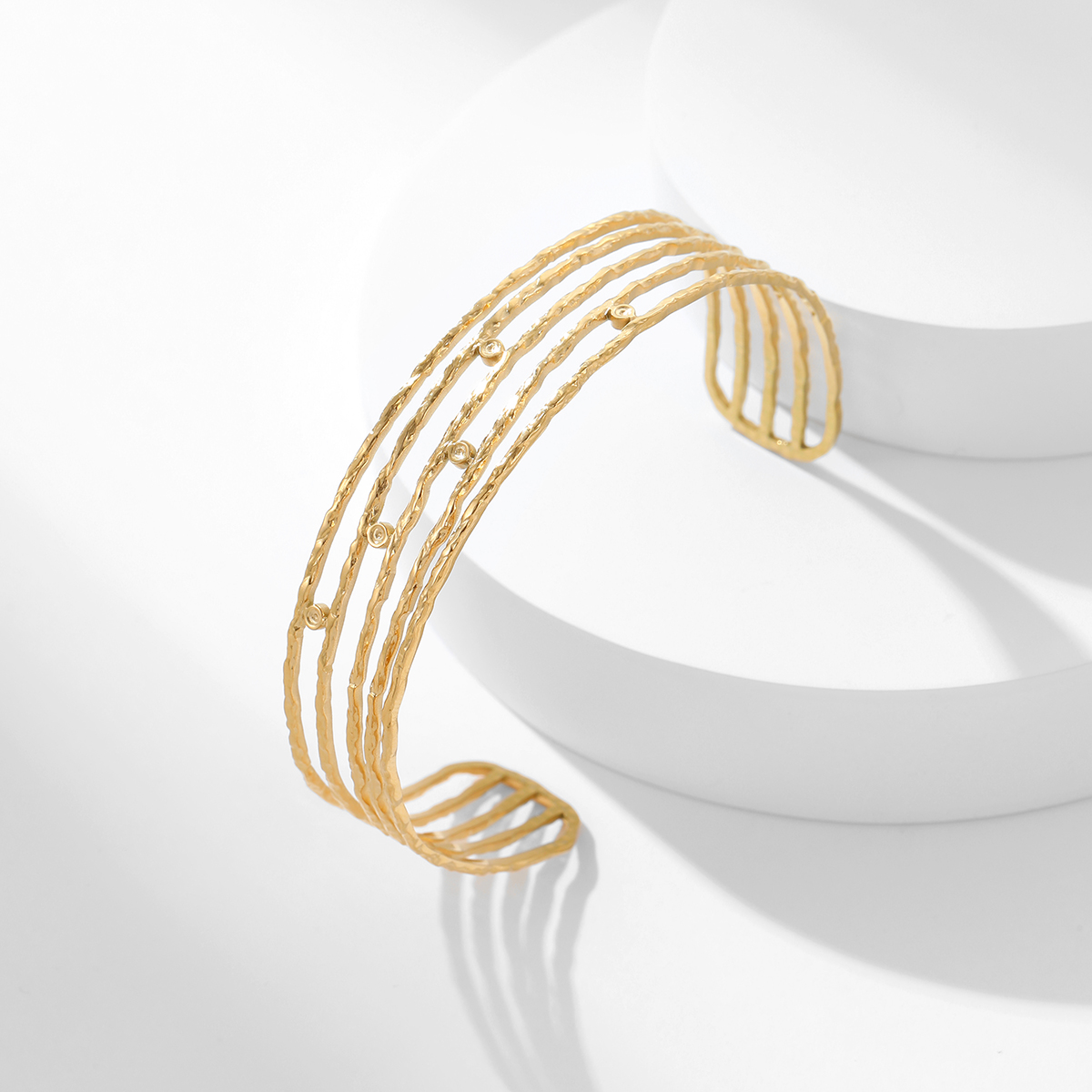 时尚不锈钢五线镂空黑色珐琅开口手镯