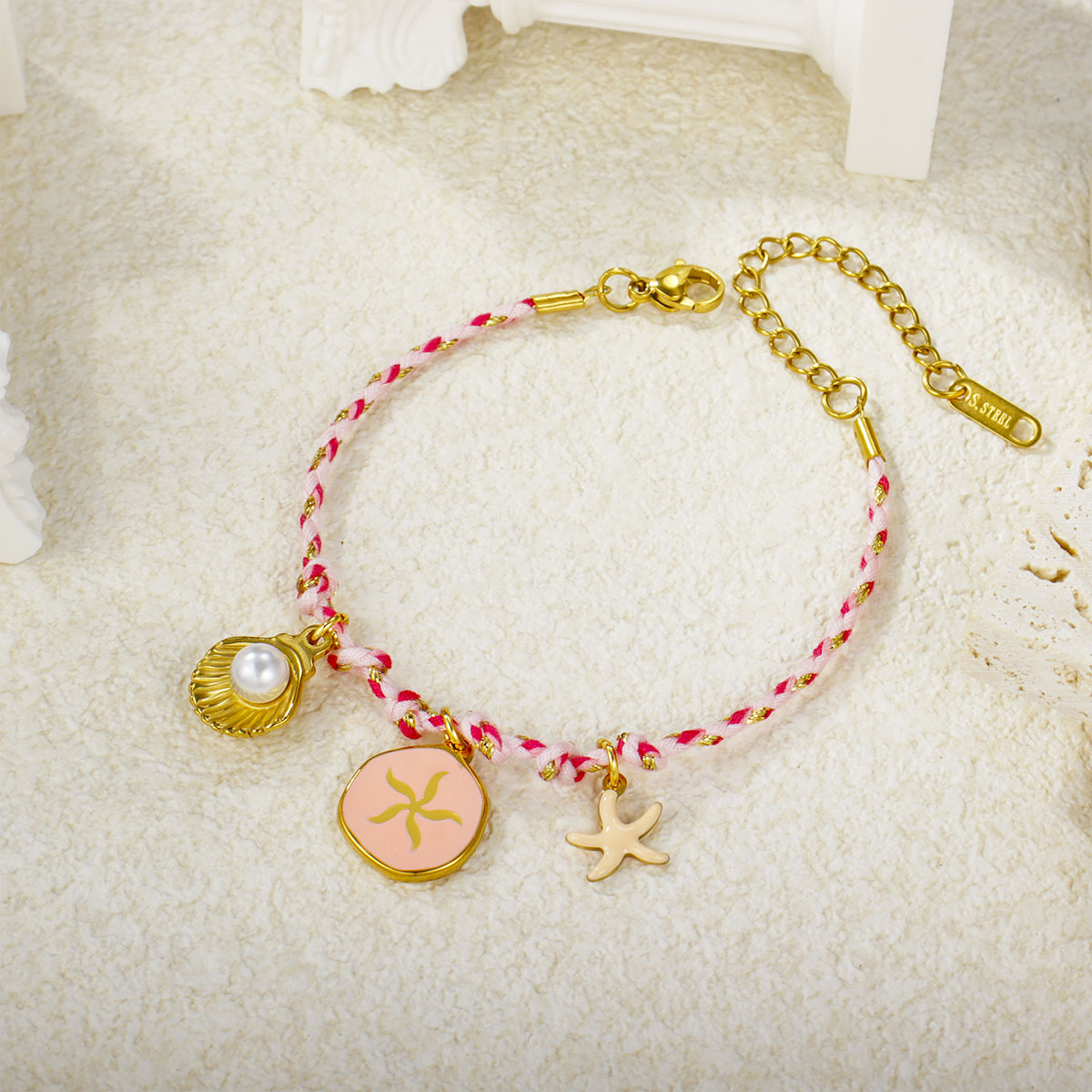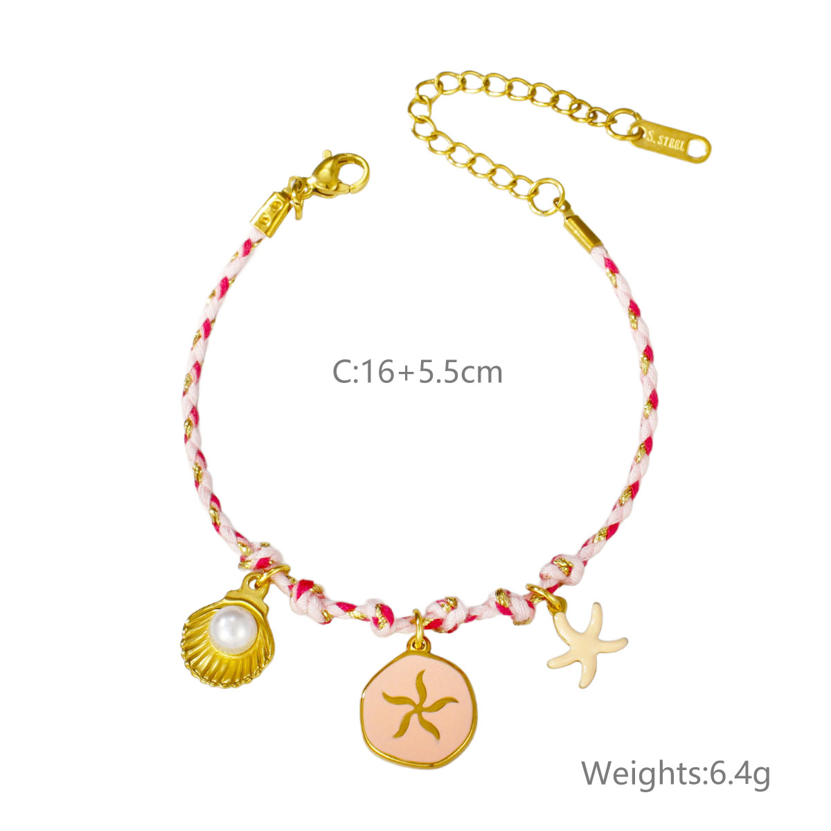 "女士时尚18K镀金扇贝吊坠手链彩色绳编"