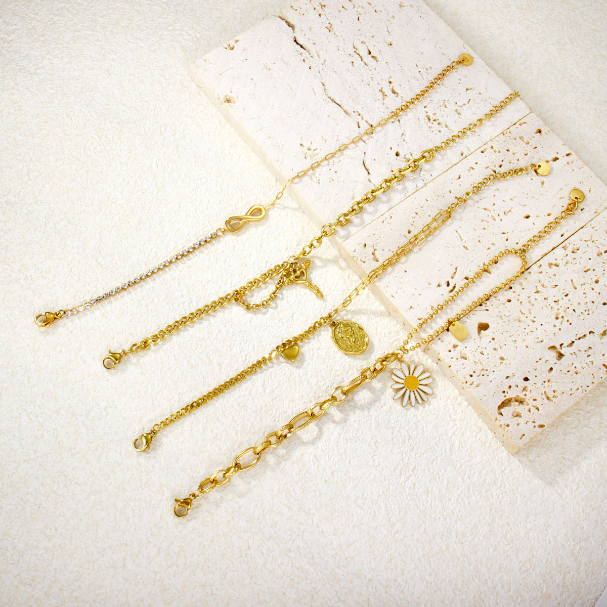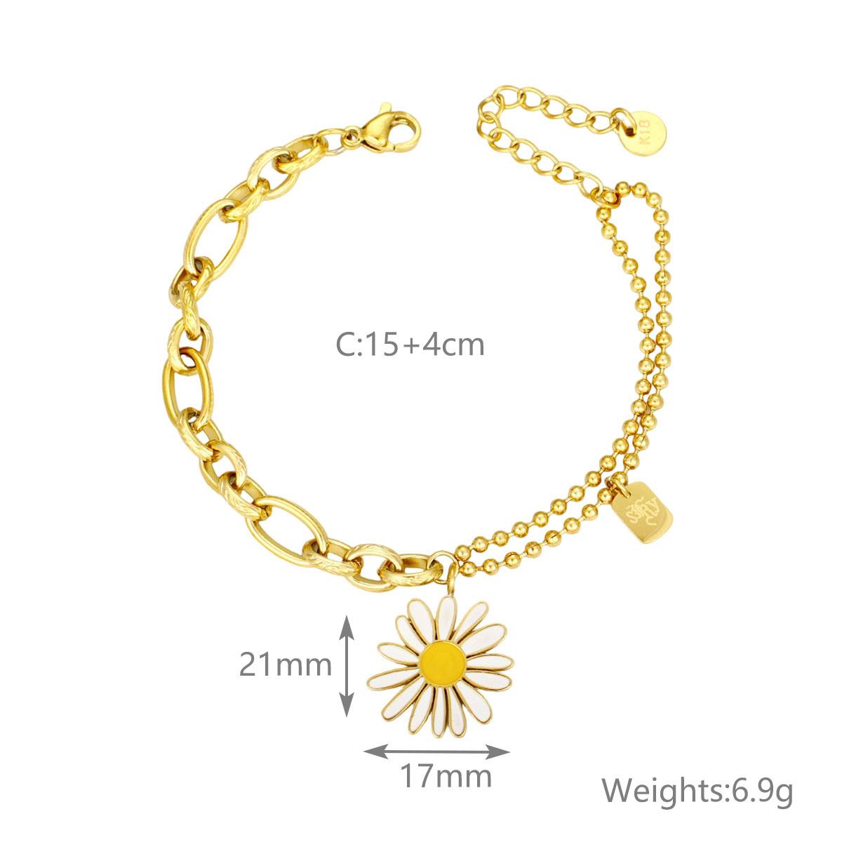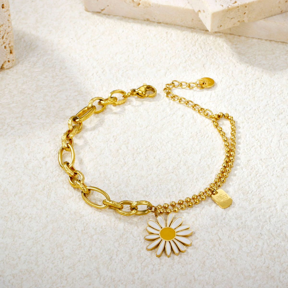 "时尚18K镀金不锈钢雏菊手链"