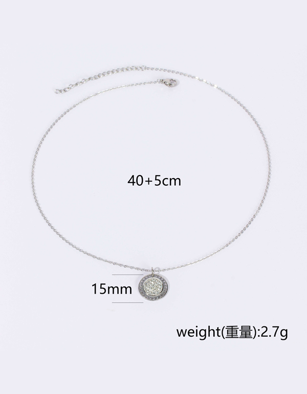 "三色圆形镂空镶钻玫瑰金不锈钢项链"