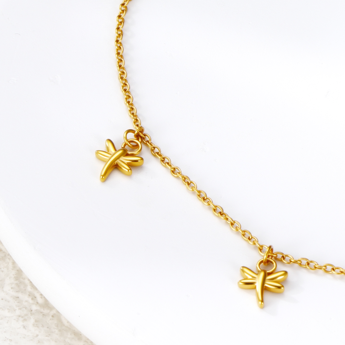 "女士时尚项链带蜻蜓和几何图案"
