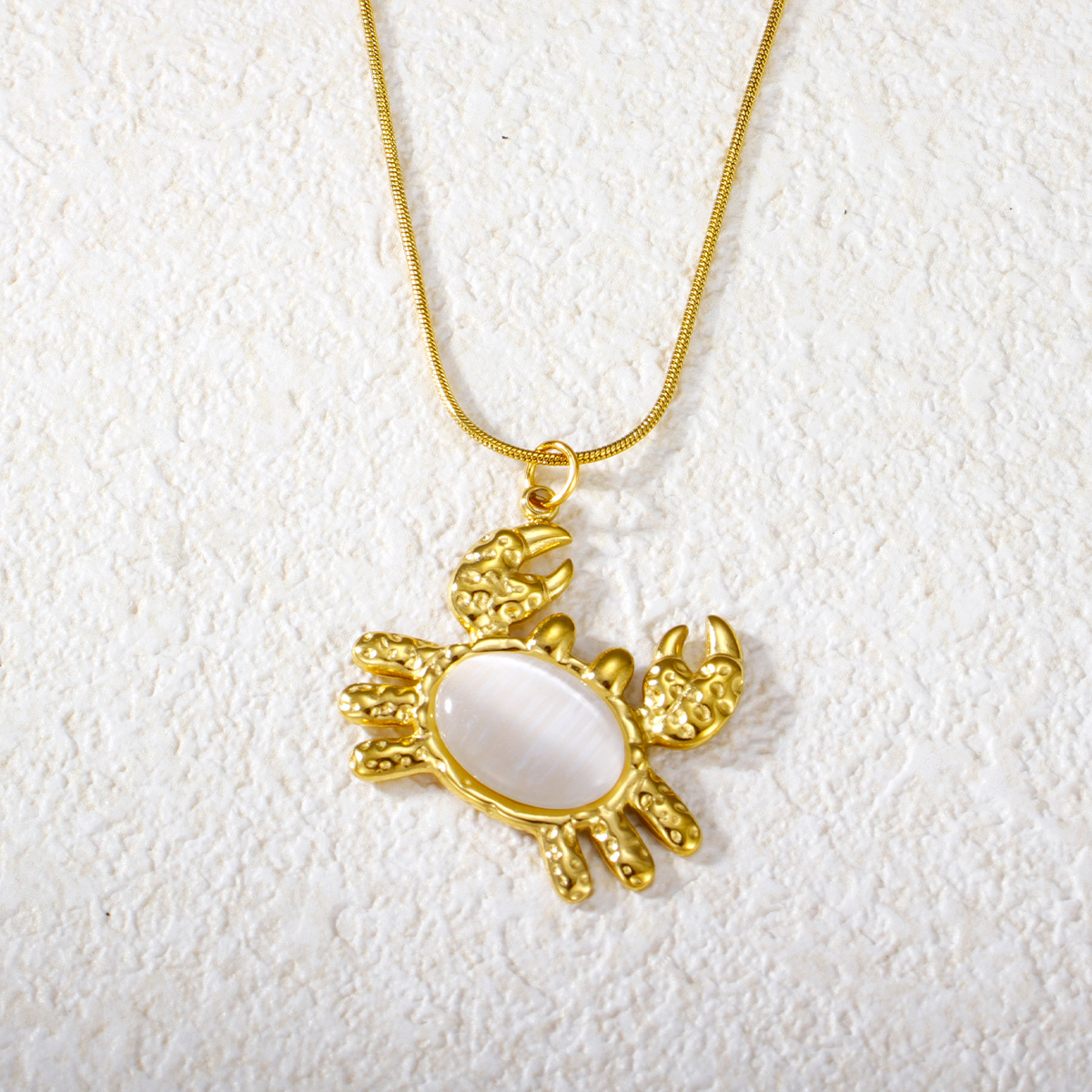 "可爱螃蟹猫眼石吊坠项链珠宝"