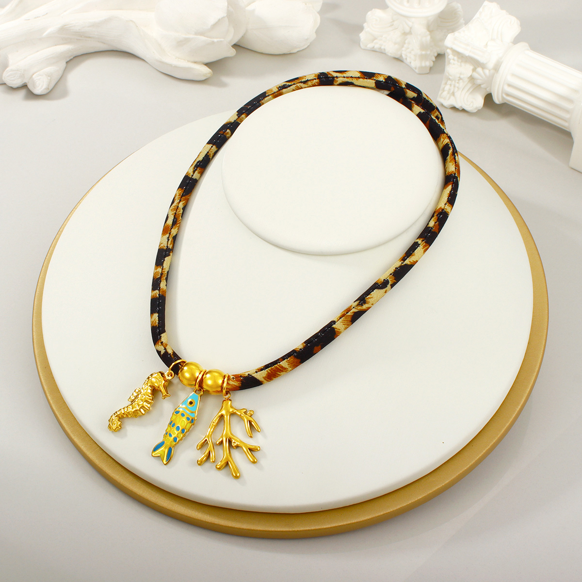 "18K镀金PVD不锈钢链条拼接项链,防水太阳雏菊花朵"