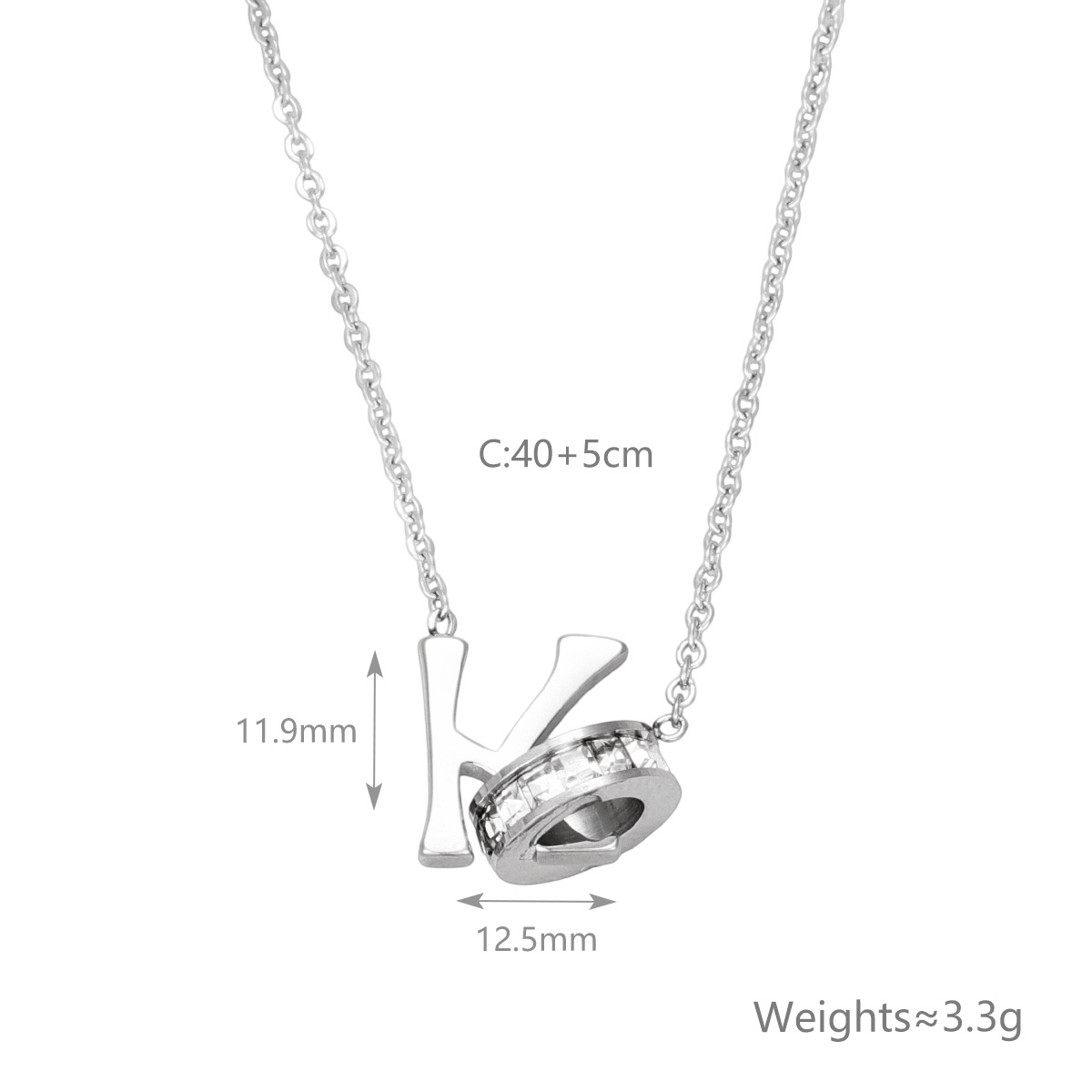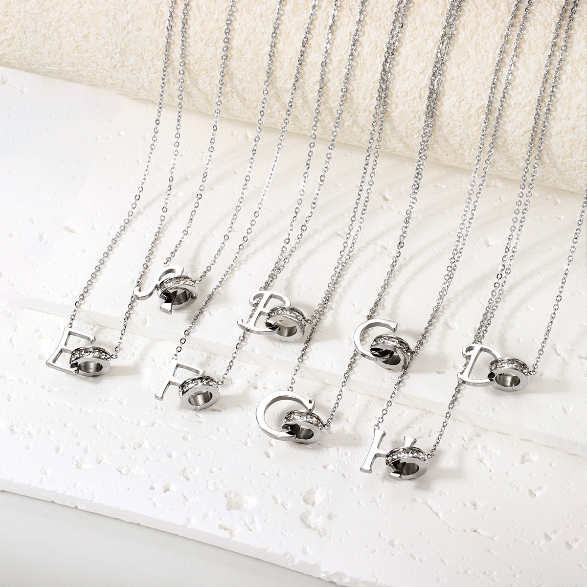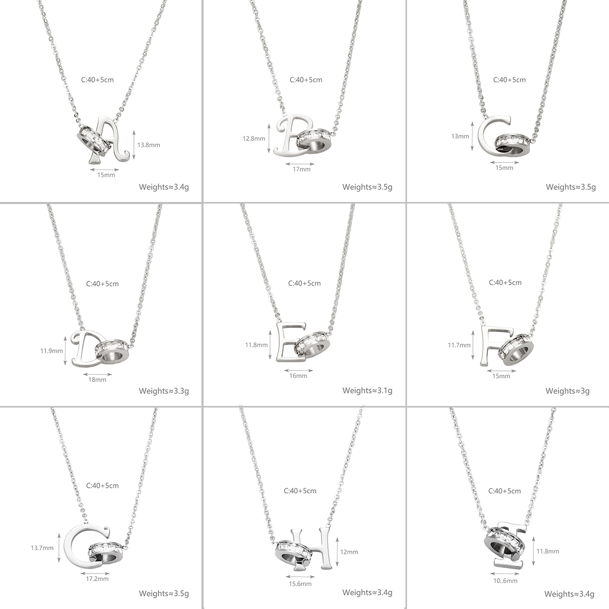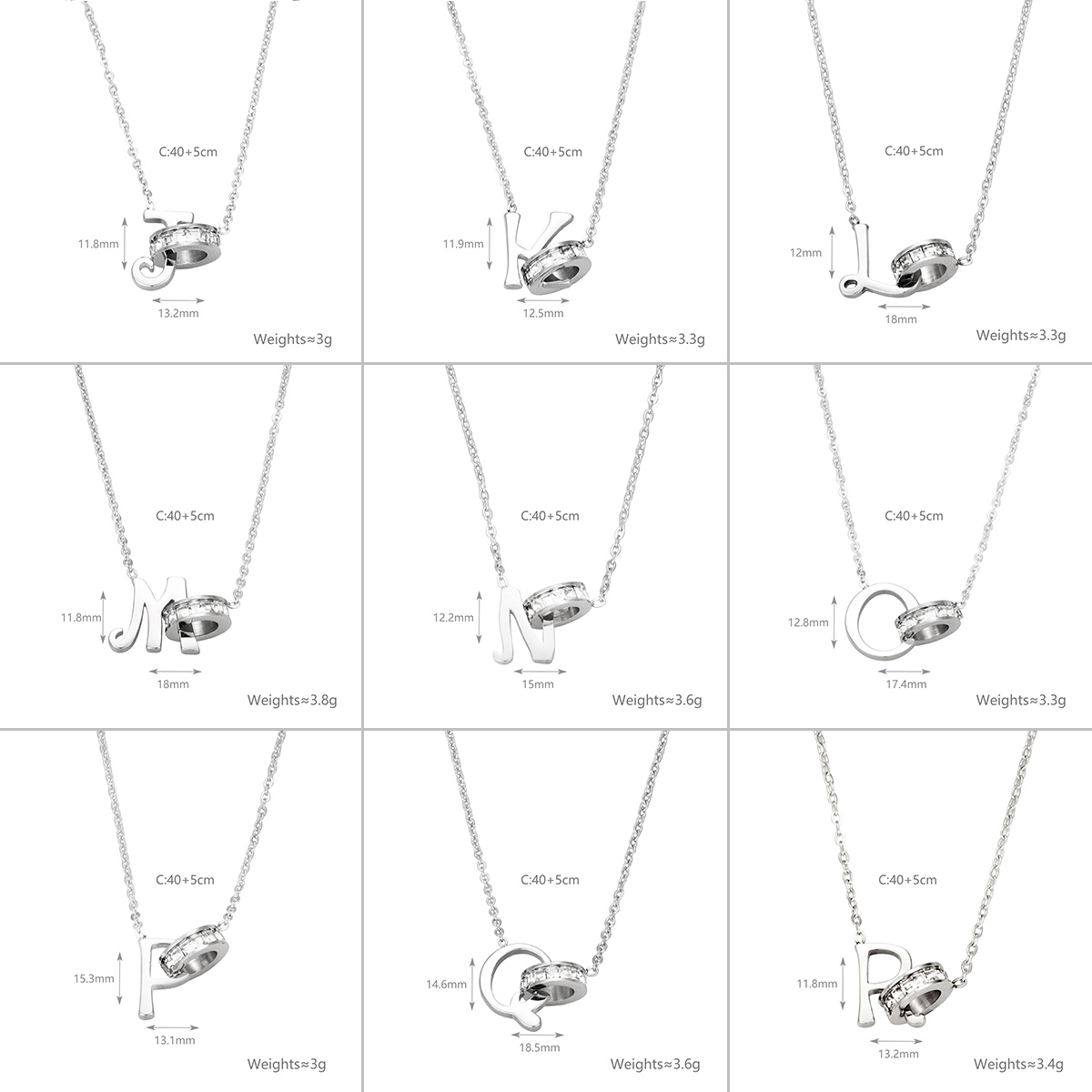 "镀银镶钻AZ字母吊坠,316L不锈钢时尚锁骨链"