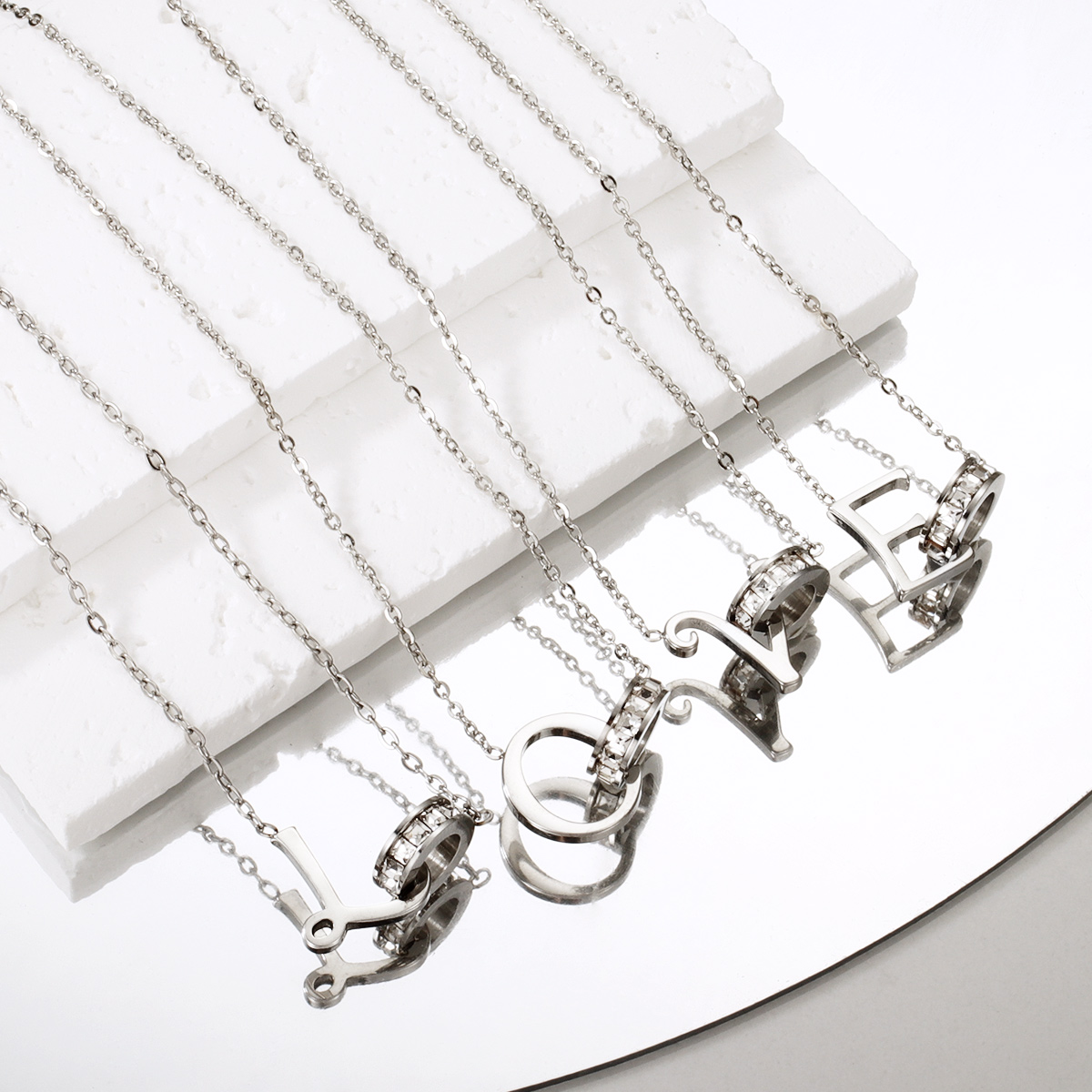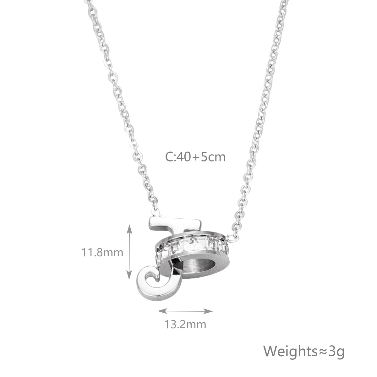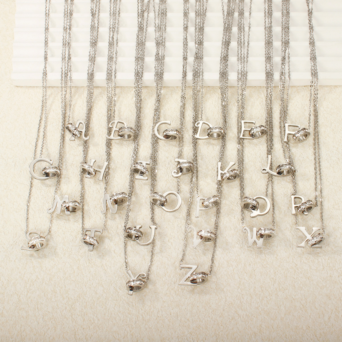 "镀银镶钻AZ字母吊坠,316L不锈钢时尚锁骨链"