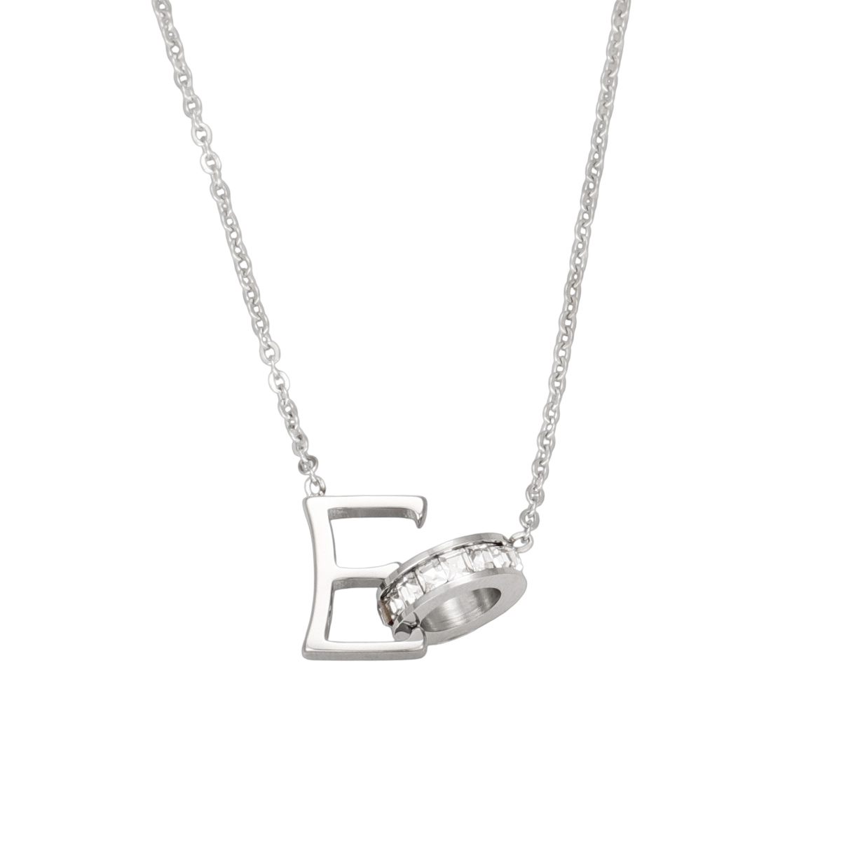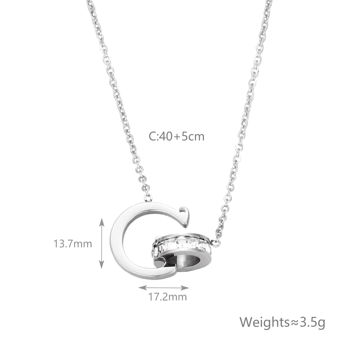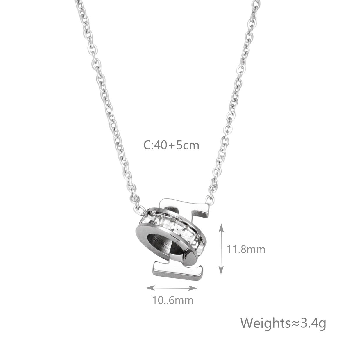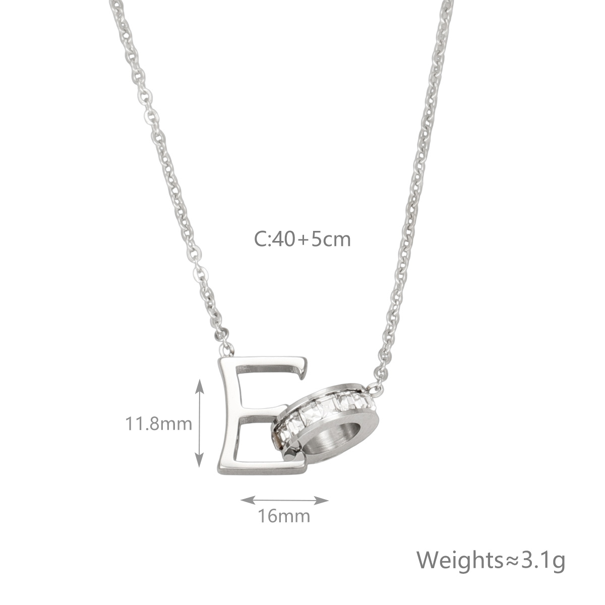 "镀银镶钻AZ字母吊坠,316L不锈钢时尚锁骨链"