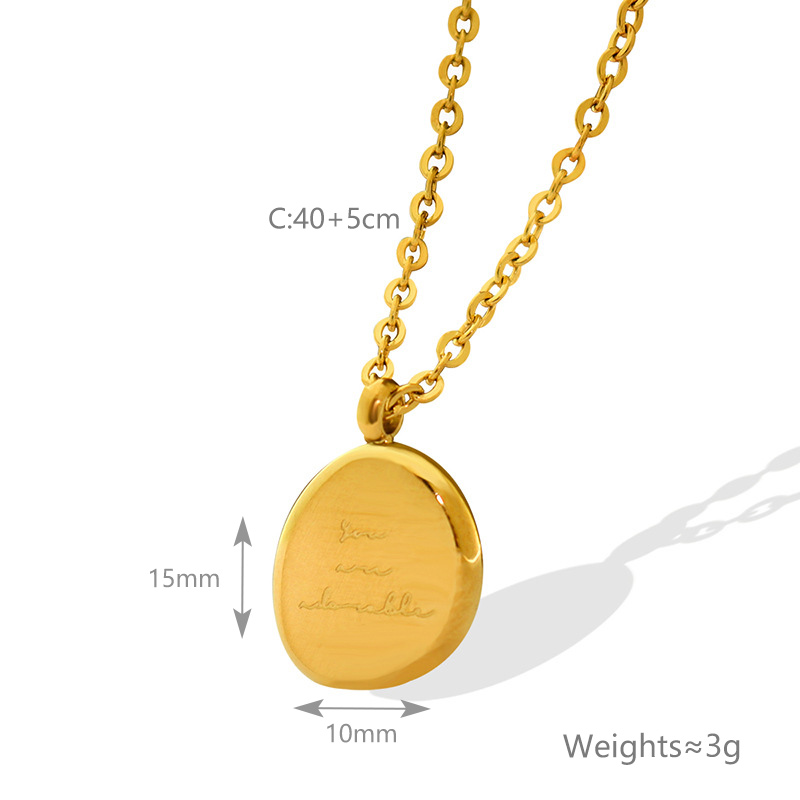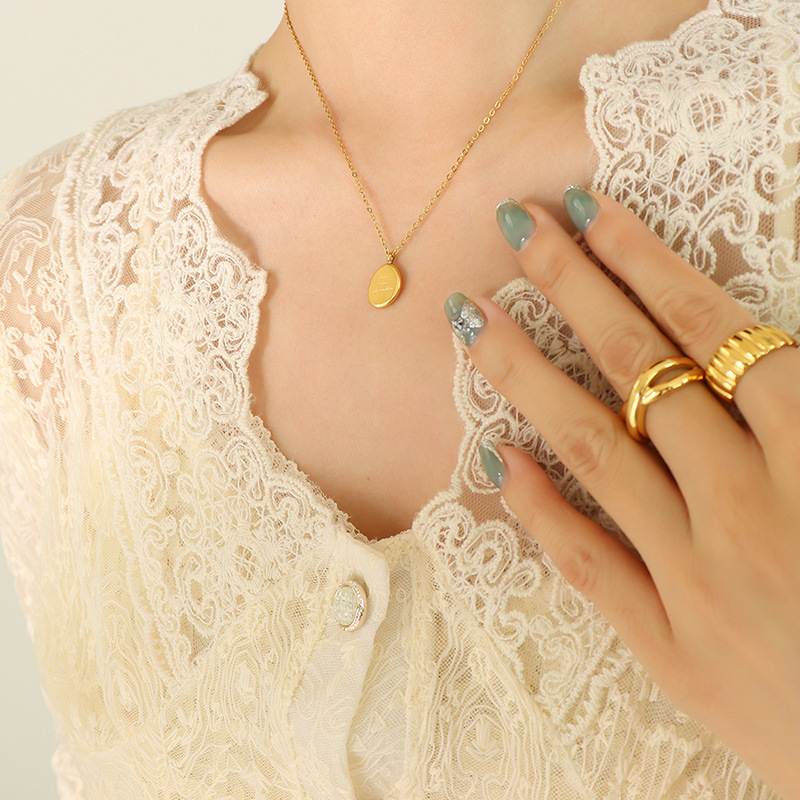 时尚简约设计钛钢18K镀金PVD不规则椭圆字母吊坠项链