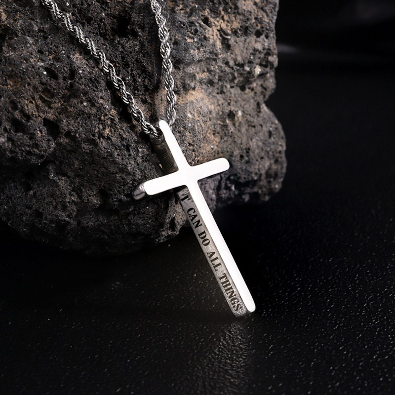 简约不锈钢黑色十字架吊坠项链,可刻字