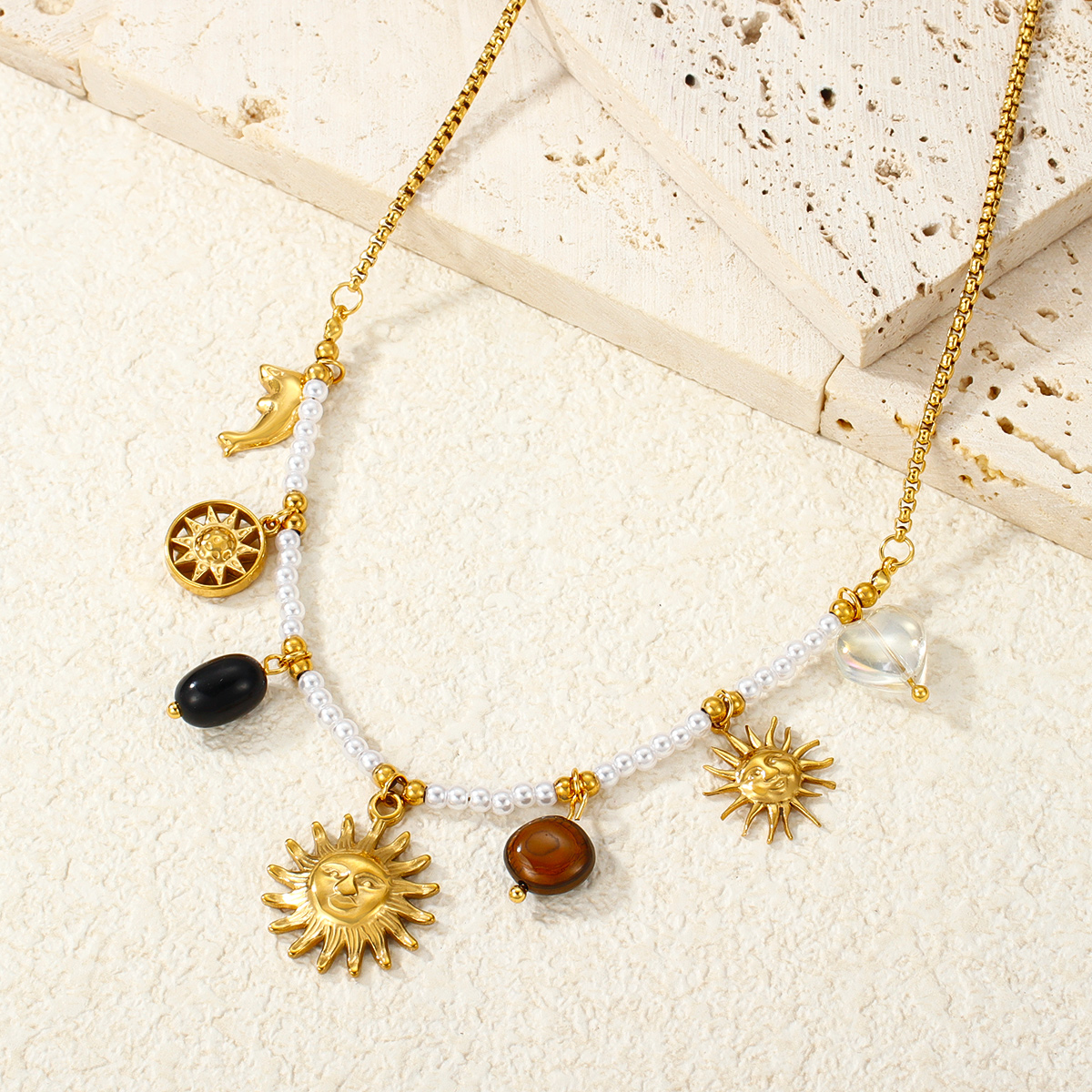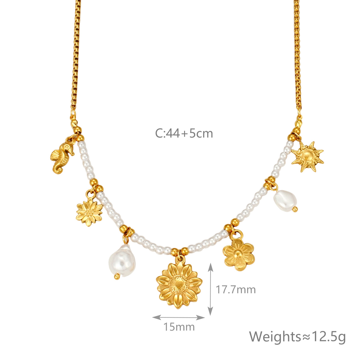 "时尚向日葵吊坠项链不锈钢材质18K镀金链条"