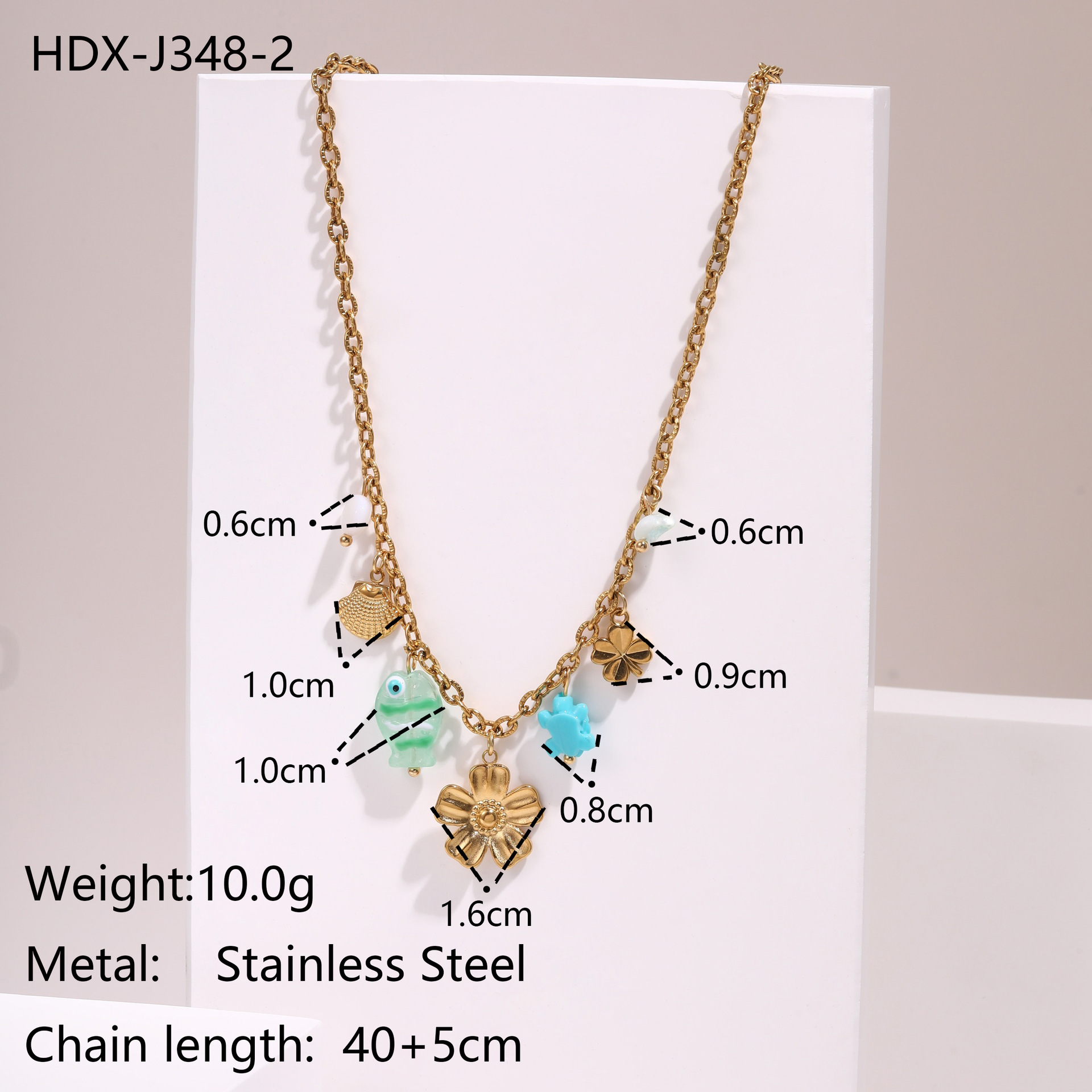 "批发不锈钢18k镀金夏季沙滩贝壳珍珠防水首饰项链"