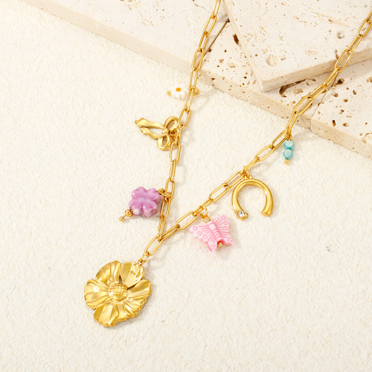 18K镀金防水日月绿松石吊坠项链