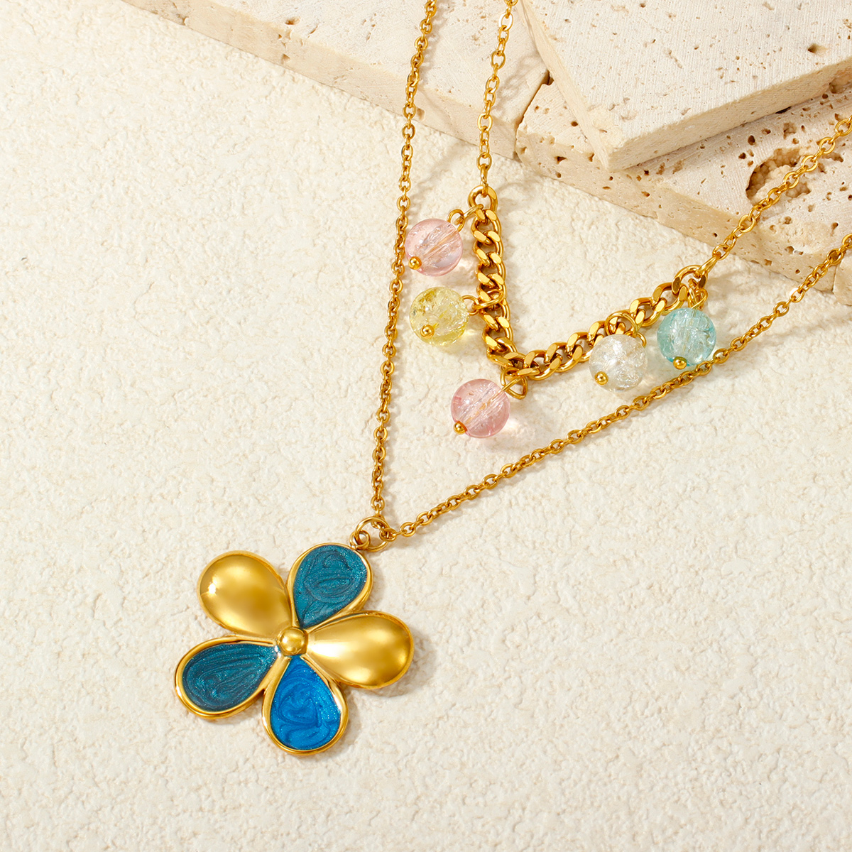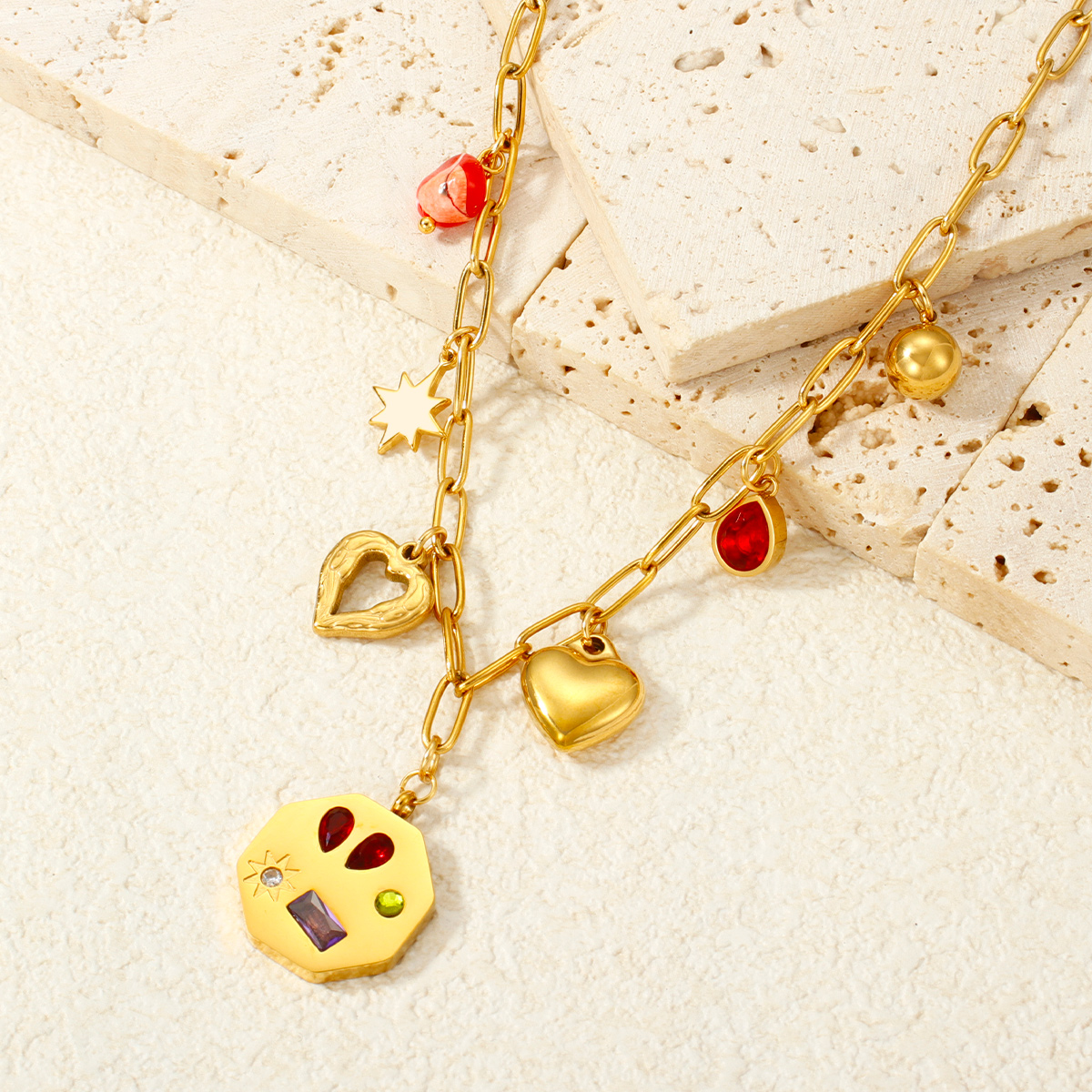 18K镀金海洋项链,防水不锈钢海星贝壳吊坠