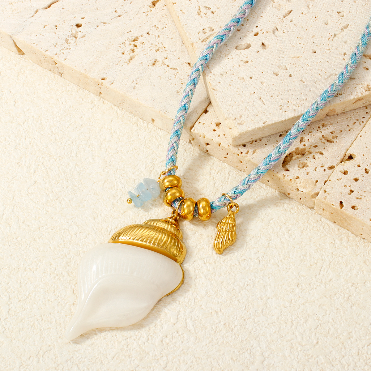 "18K镀金海洋项链,防水不锈钢海星贝壳吊坠"