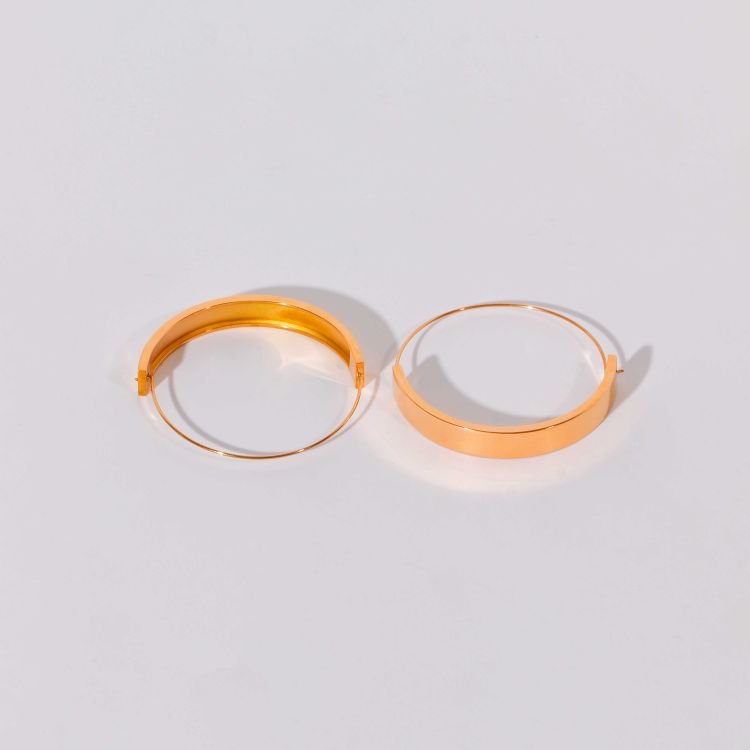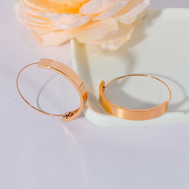 定制不锈钢镀18K金拼接大耳环简单几何光滑耳环