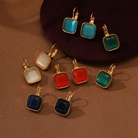 饰品加工几何方形镶珍珠耳环