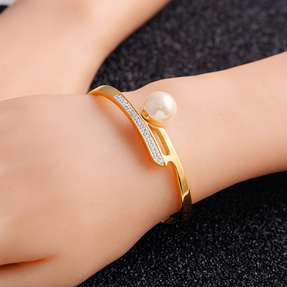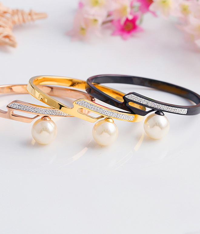 不锈钢手镯珍珠水晶钻手镯代工
