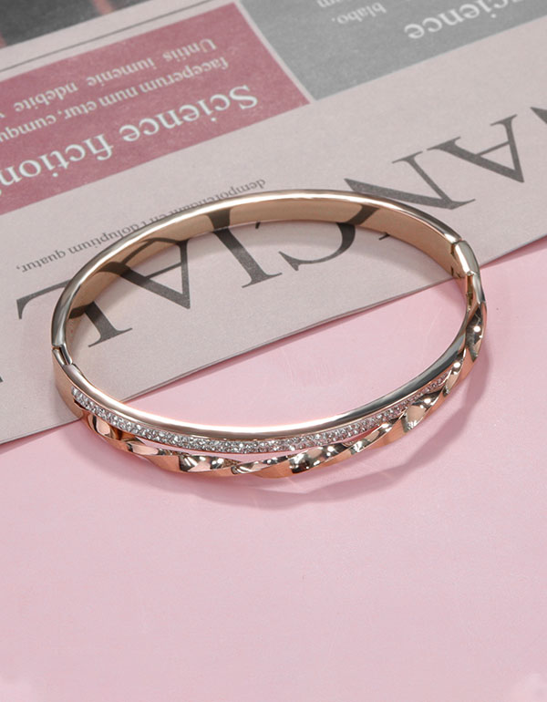 不锈钢不掉色手镯玫瑰金钻石手镯代工