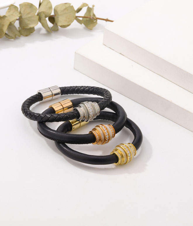 饰品厂家不锈钢镶钻编织皮革磁性男女款手镯