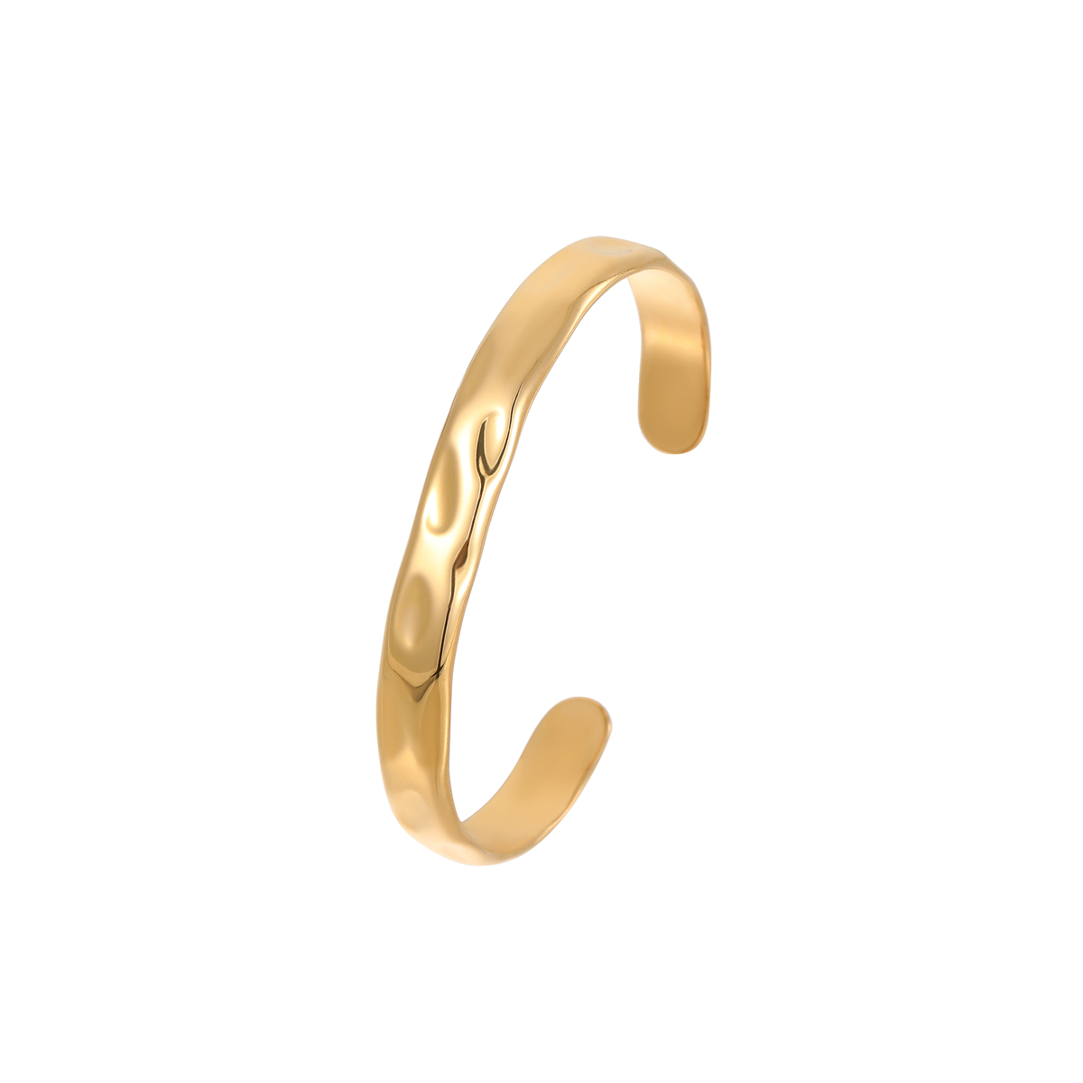 "时尚手镯18K镀金防水锤纹开口手镯"