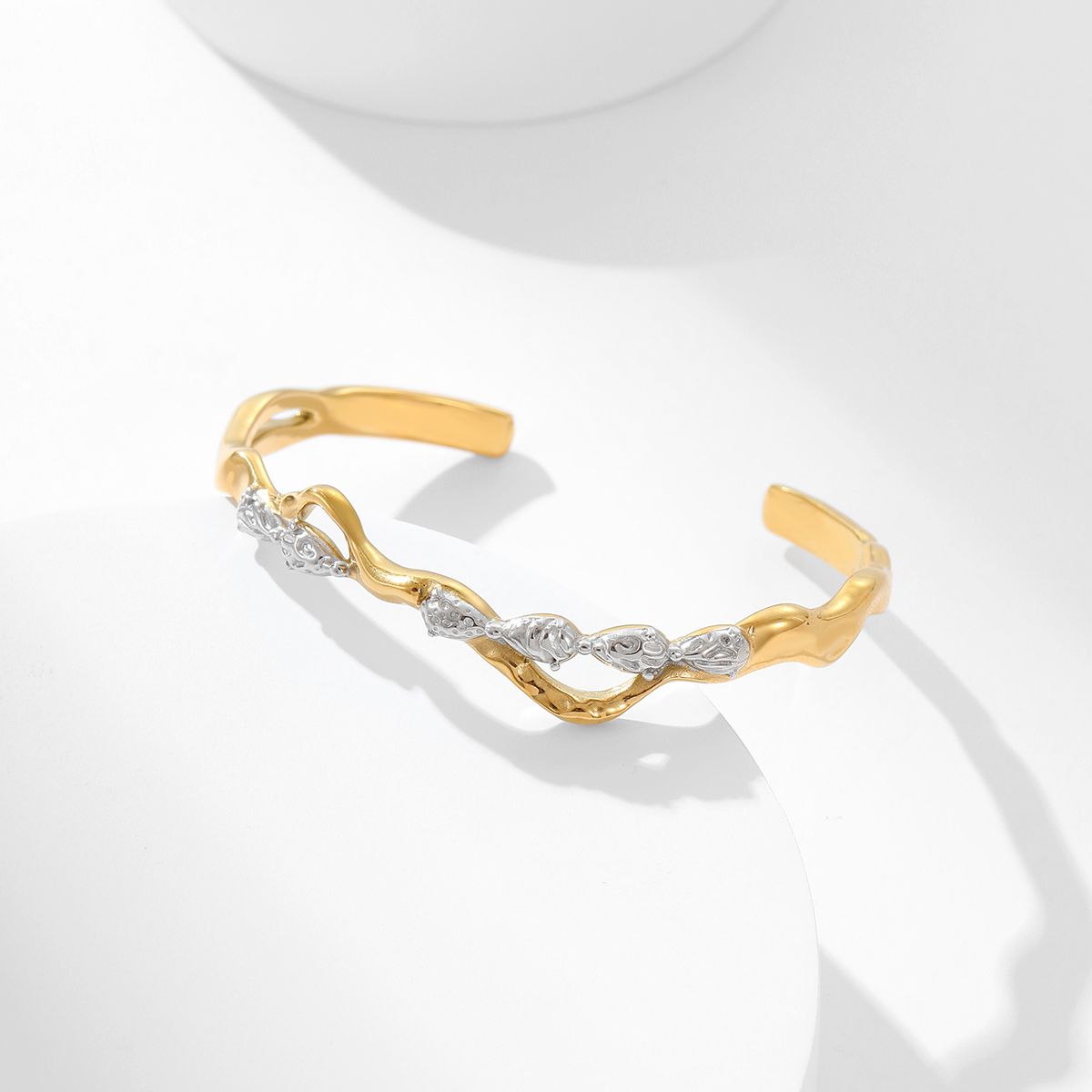 " 不规则开口锆石树枝设计手镯"