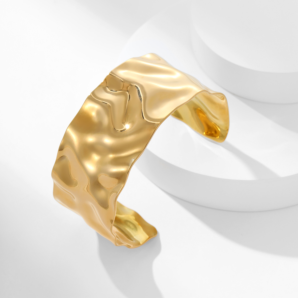 夸张不锈钢18K镀金锤纹宽手镯