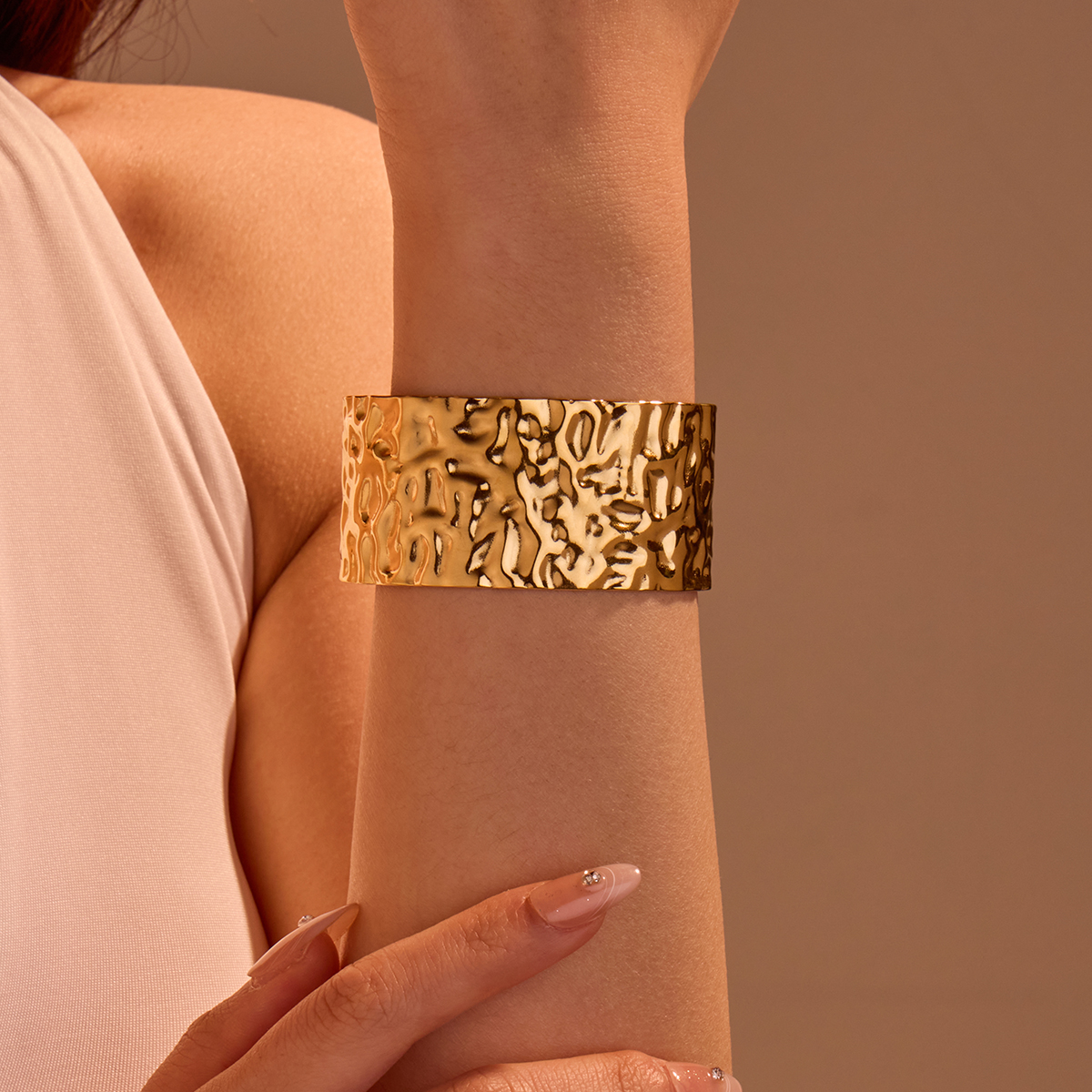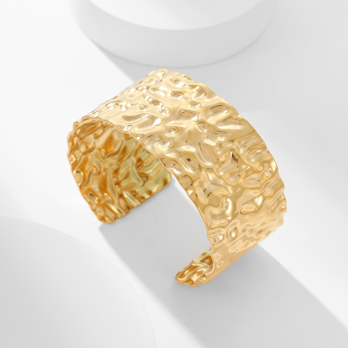 "个性化锤纹宽边熔岩开口手镯男女款"
