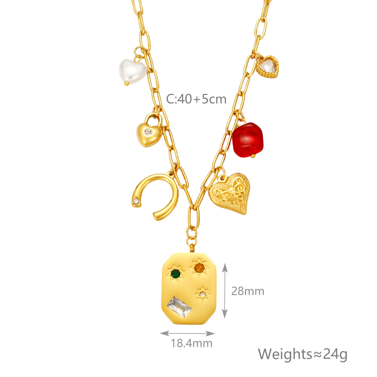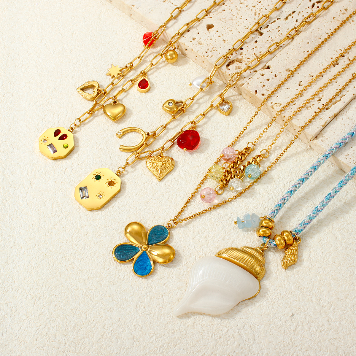 18K镀金海洋项链,防水不锈钢海星贝壳吊坠