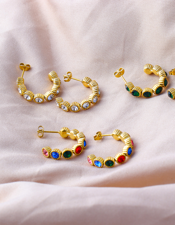 "不锈钢铸造耳钉彩色锆石耳扣"