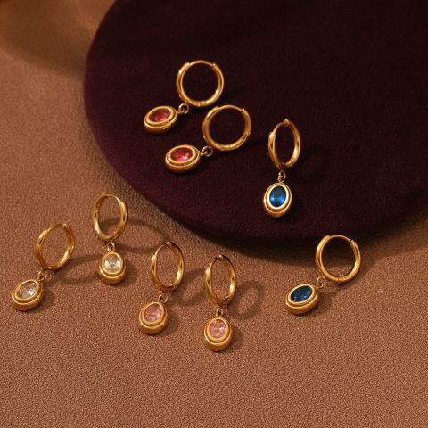 椭圆吊坠镶嵌锆石耳环首饰厂