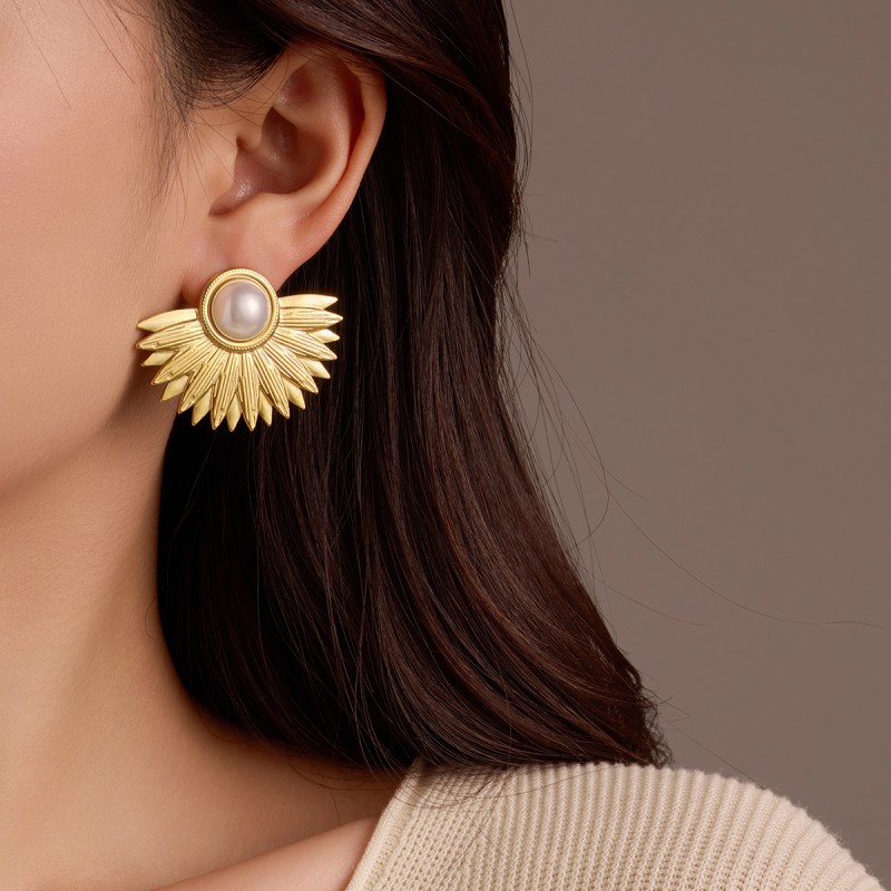 "3D模型半圆镀24K金耳环耳饰耳钉"